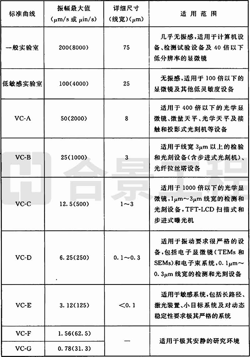 圖A.0.1 精密設(shè)備、儀器容許振動通用標(biāo)準(zhǔn)曲線