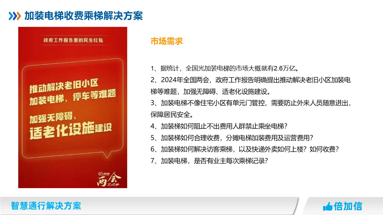 老舊小區(qū)沒有電梯,上下樓難一直困擾居民生活,2024年全國兩會,政府工作報告明確提出推動解決老舊小區(qū)加裝電梯等難題,加強無障礙、適老化設(shè)施建設(shè),加裝電梯需要安裝梯控設(shè)備需求大,功能不同于普通梯控系統(tǒng)。