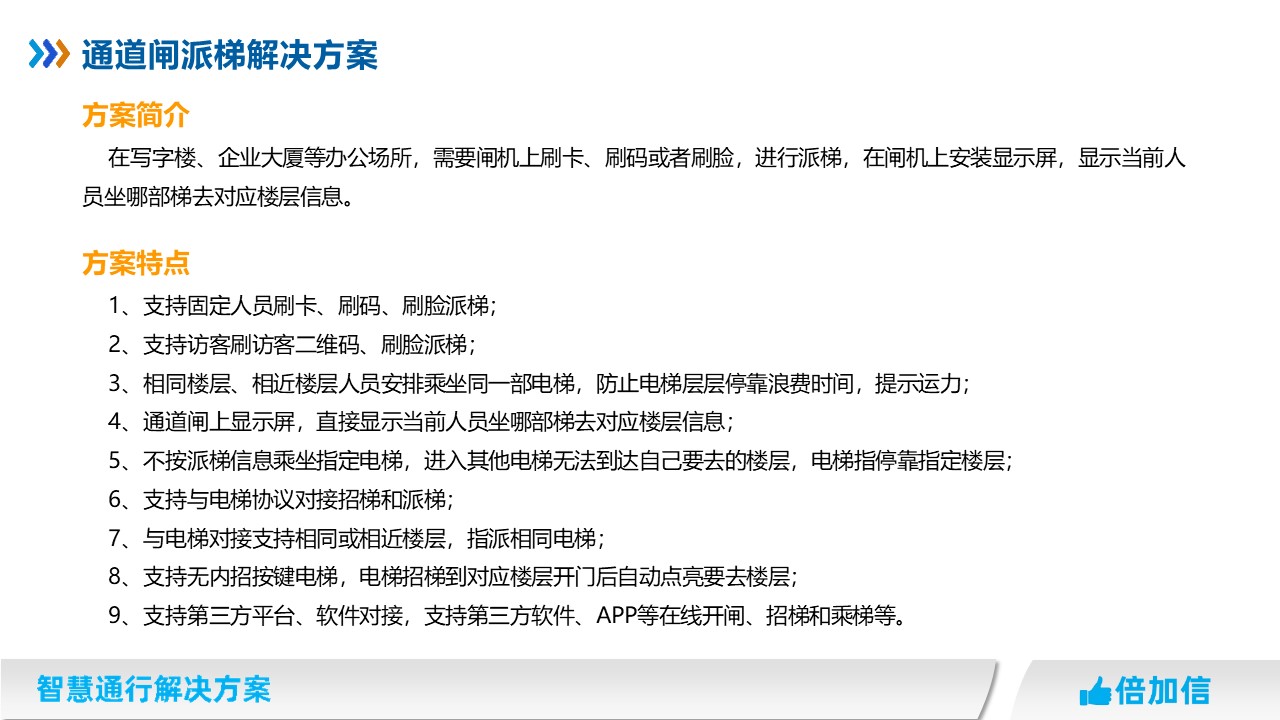 1、支持固定人員刷卡、刷碼、刷臉派梯;