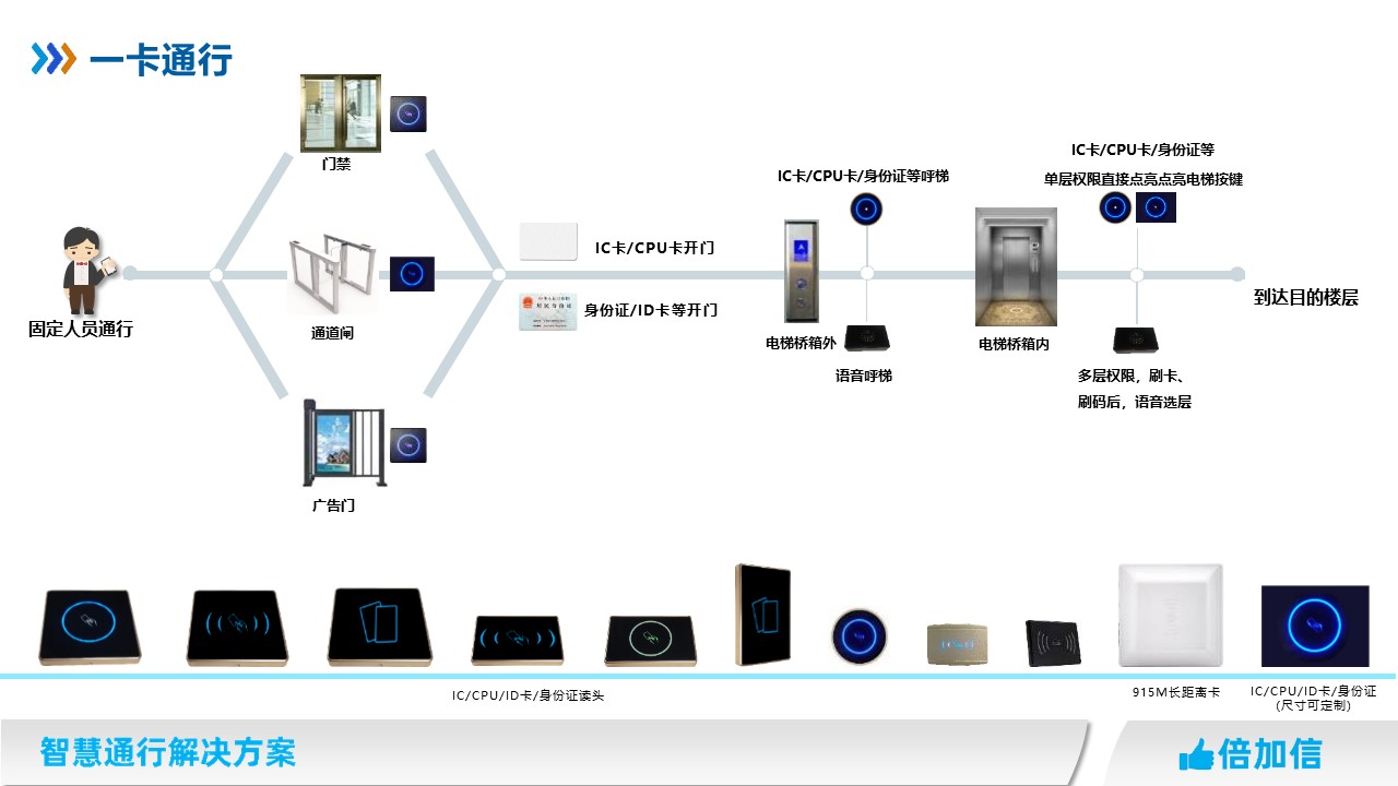 1、一次發(fā)卡后可通行門禁、梯控、閘機(jī)等設(shè)備;