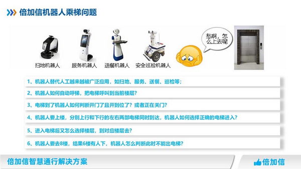 在高層建筑或大型商場等場所,電梯的使用效率對于整個建筑物的運營效率具有重要的影響。機器人倍加信梯控的作用,正是為了提高電梯的使用效率,進(jìn)而提高整個建筑物的運營效率。